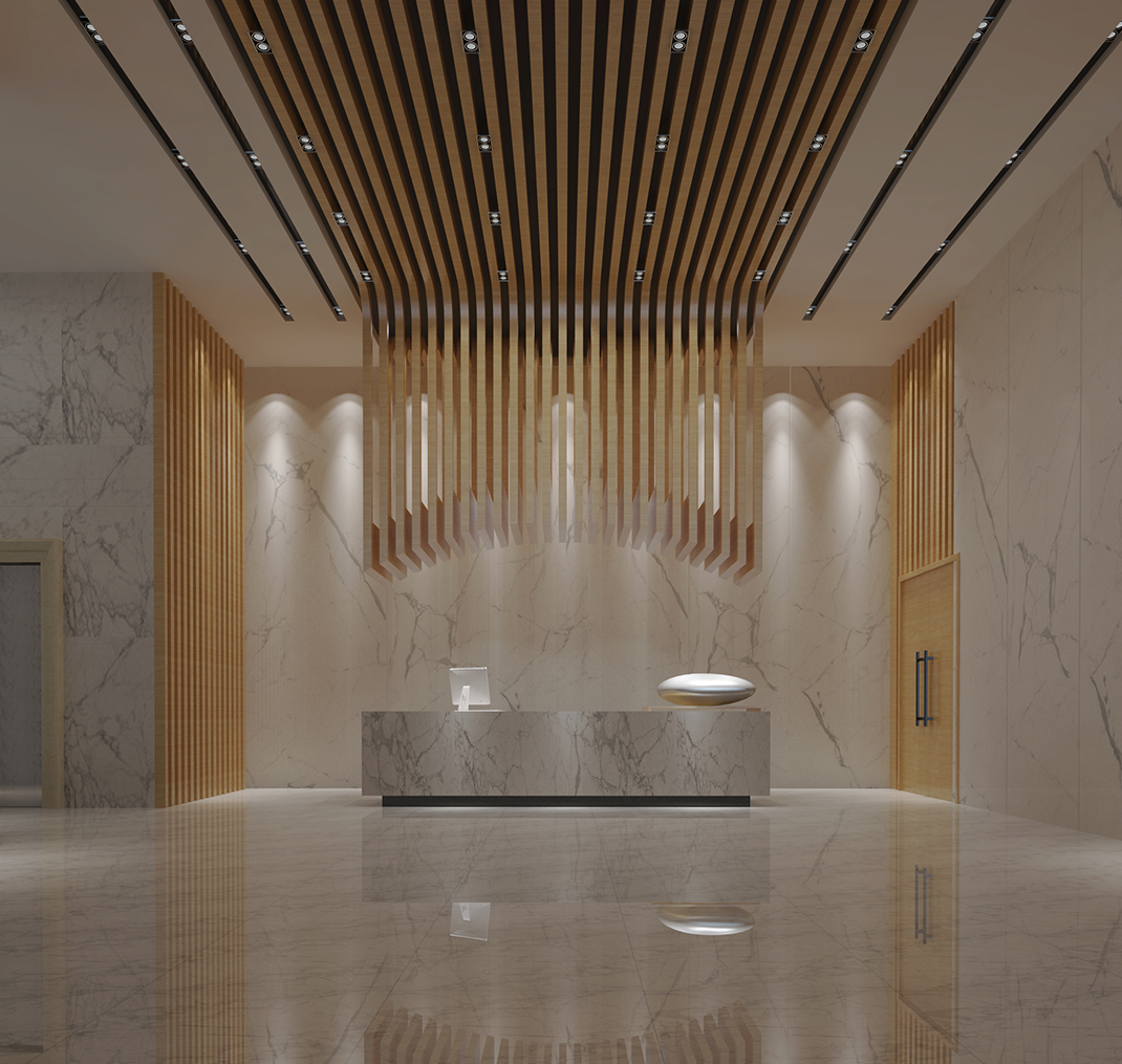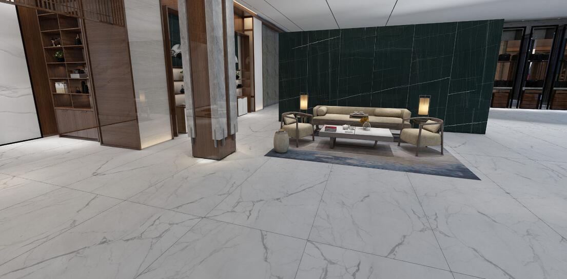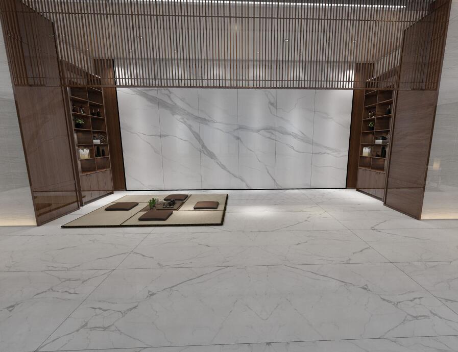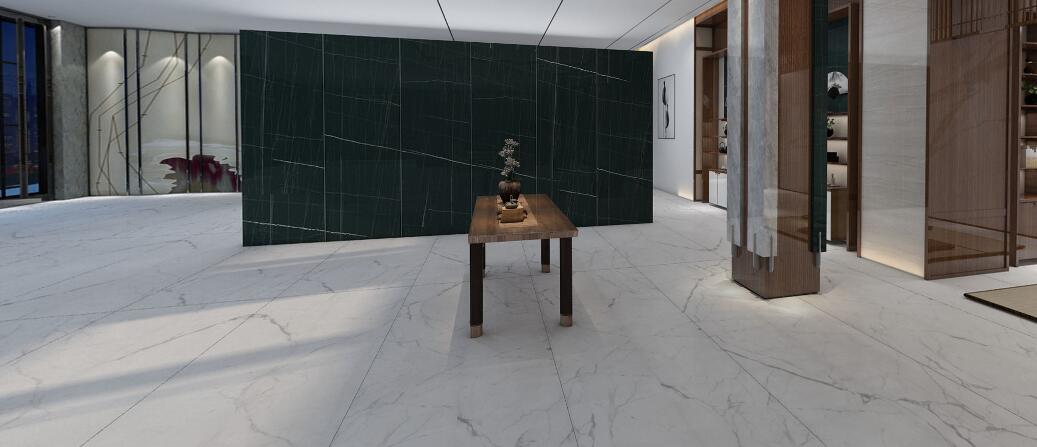 地板采用薄板卡拉拉(1000*3000mm)混贴