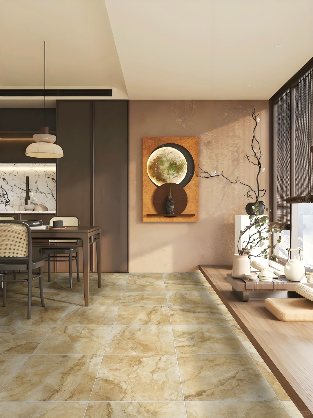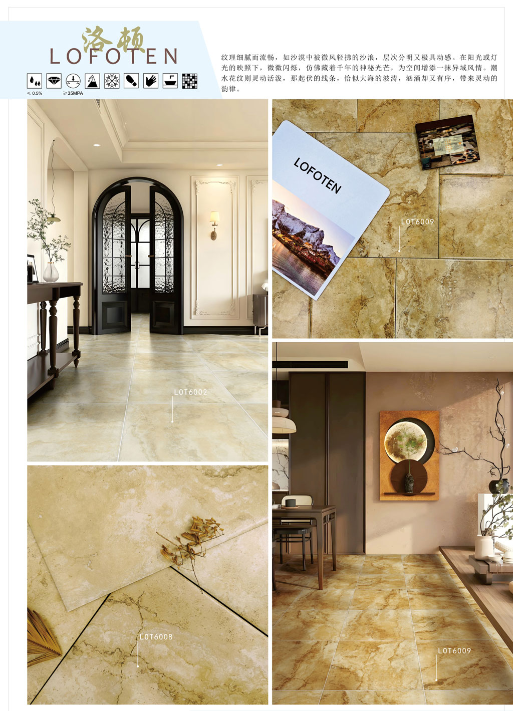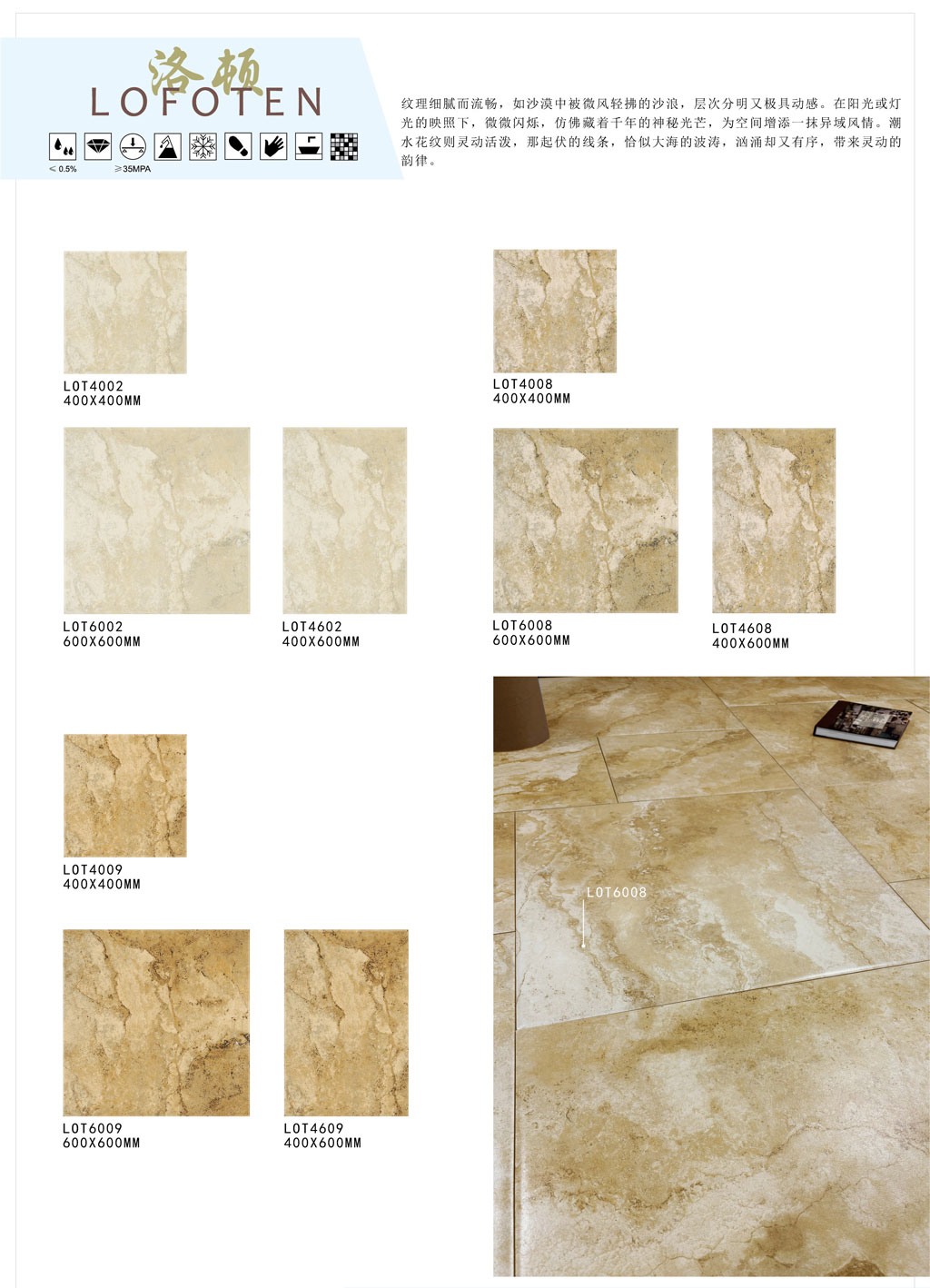 铺贴场所:庭院、客、餐厅、卫浴间地面